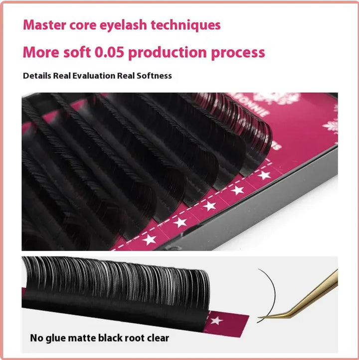 Achieve a flawless and natural lash look with these Velvet Soft Grafting Eyelash Extensions. Made from high-quality imported fiber, these extensions are designed for easy application and a comfortable, lightweight feel. Perfect for professionals and enthusiasts alike, they offer a versatile range of lengths, curls, and thicknesses to suit every preference.